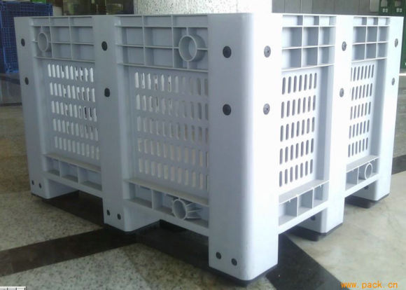 材質:選用具有高沖擊強度的HDPE(低壓高密度聚乙烯)為原料,封閉卡板箱的箱體采用一次注塑成型技術, 產品設計以托盤和箱體為一體式,特別適合配套各類搬運設備如叉車及手動液壓搬運車等使用,周轉更為靈活方便。